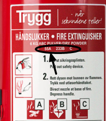 For A, B og C branner(kan også fås i D klasse for metaller) Kommer i effektklasser fra 5A til 55A og 183B til 233B, ved kjøp av ny i dag er 43 A og 55 A pulver det vanlige. Slukker også branner i elektriske anlegg hvis merket for elektriske branner.