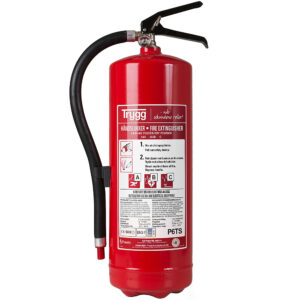 B) Pulverapparat på minst 6 kg med ABC-pulver(Eller ABE pulver som har hatt ti-års service med halsring)